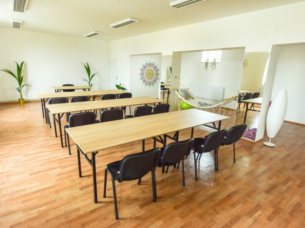 Prostor je klidný, příjemný a ideální jak pro pohybové, tak i vzdělávací či seberozvojové akce.